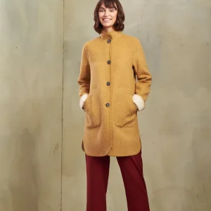 Abrigo Satis De Baby Alpaca & Lana Color Senape & Ecru